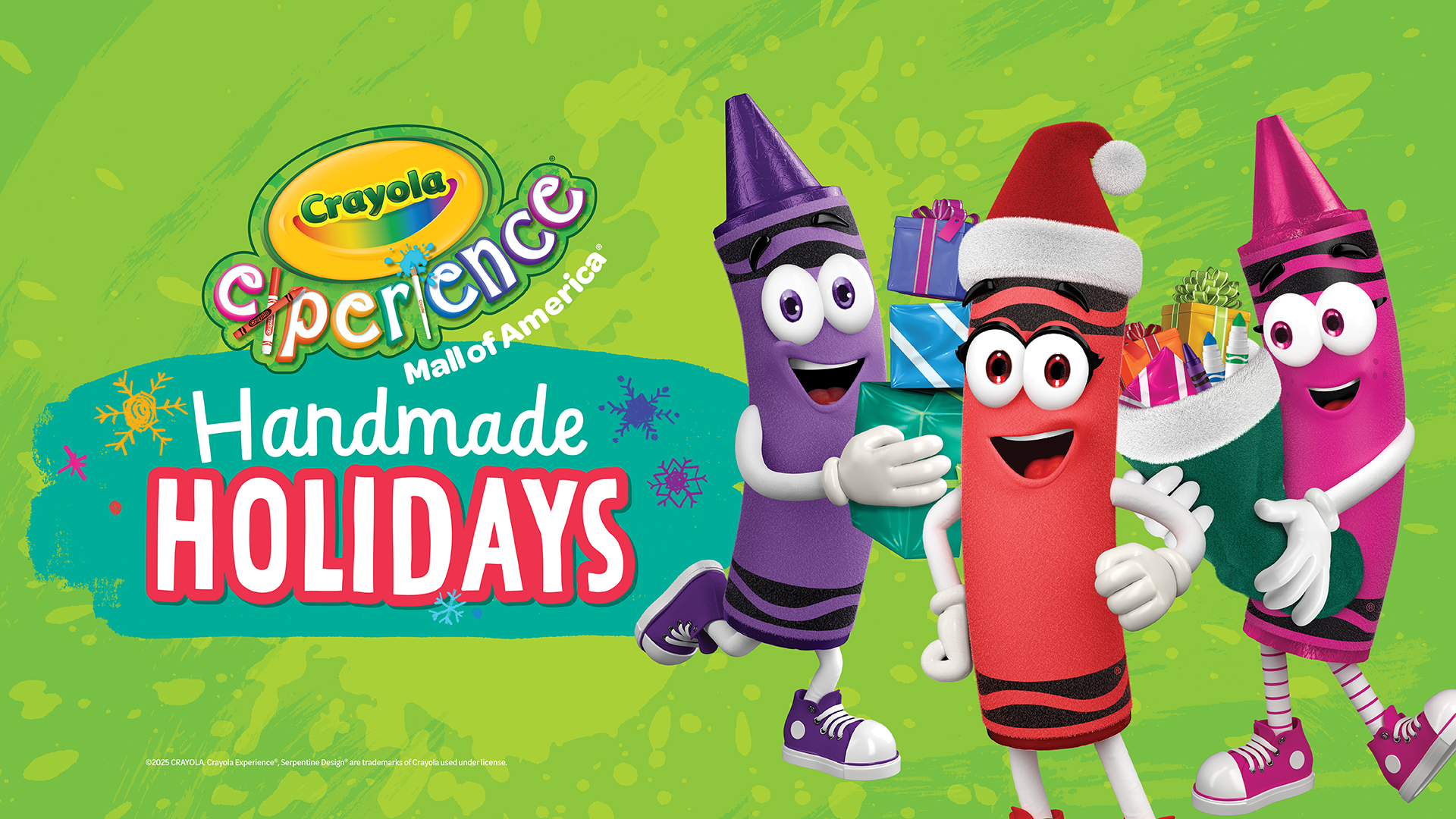 Deck the halls with tons of COLOR! From November 1 – December 31, come enjoy holiday fun the Crayola way! Complete a seasonal scavenger hunt, pose in holiday photo-ops, and make handmade gifts from the heart!